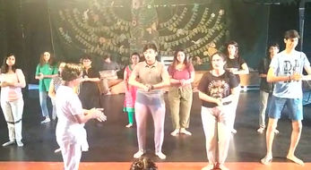 Oh boy, let me tell you about the wild ride I had during the duration of this project! We traveled by bus everyday to NSD (National School of Drama, Bangalore) at around 9am from the Srishti campus and got back at around 7-9pm (there were also days that I got back at 12pm and had to wake my PG Warden to allow me entry). The first few weeks of this project were spent in familiarizing ourselves with the NSD campus environment and various performance based activities. We played more introductory games than I can count - playing catch blindfolded, memorizing Srishti and NSD student names in small batches (there were close to a 100 names!), and many more. That was followed by morning acting lessons and exercises promoting exaggerated movements. We had group performances simulating public spaces. I acted as a marketplace fishseller shouting "Karimeen! Karimeen!". Then we had voice modulation activities (I was pretty bad at bringing out my chest voice) and Yakshagana performances (I have a background in Bharatnatyam, so this was fun). The NSD students at the time were preparing for a Yakshagana performance themselves, so we got to see them in their element from make-up & costumes to their dramatic and elegant performances. But that's not all, we also got to experiment with music using everything from beanstalks to pots and pans. We sang and introduced animal sounds to our music to enhance it. We got to try out Malakambha (I could only climb halfway) and rope climbing in the mornings. We even did some cleaning around the theatre - who knew sweeping could be so much fun? I could hear groans and sighs all around.
